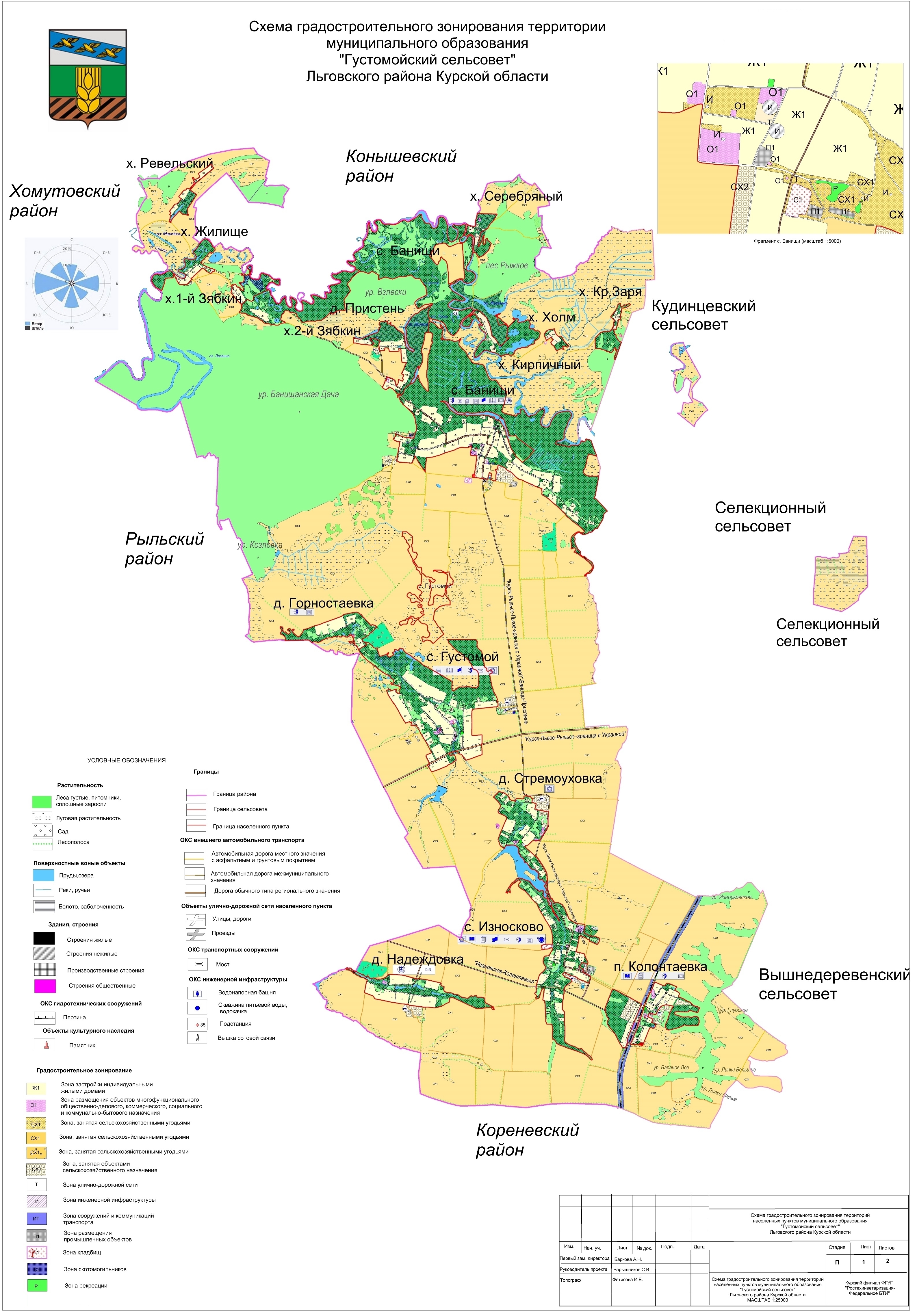 Рис.1. Схема градостроительного зонирования территории муниципального образования «Густомойский сельсовет» Льговского района Курской области